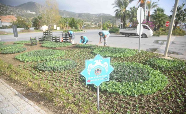 Alanya Belediyesi, parklar, orta refüjler ve yeşil alanları mevsimlik çiçekle donatıyor.