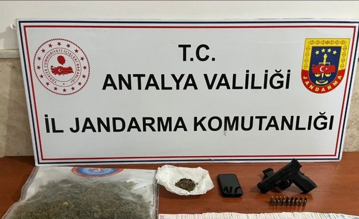 Antalya’nın Alanya ilçesinde jandarma ekiplerince düzenlenen uyuşturucu operasyonunda bir şüpheliye ait tabanca, mühimmat ve esrar ele geçirildi.