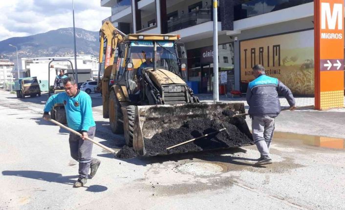 Alanya’da kış mevsimi nedeniyle deforme olan yollarda sıcak asfalt serimi ve yol bakım çalışmaları gerçekleştirildi.