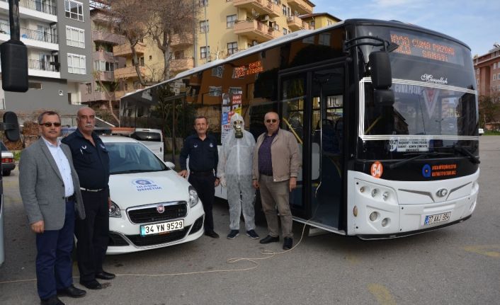 Antalya Büyükşehir Belediyesi, korona virüsüne karşı toplu ulaşım araçlarını dezenfekte çalışmalarını ilçelerde de sürdürüyor. Alanya’da da 250 toplu ulaşım aracı temizleniyor ve ilaçlanıyor.