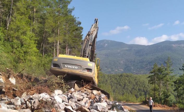 Antalya Büyükşehir Belediyesi Kırsal Hizmetler Dairesi Başkanlığı Alanya ekipleri, Dim Vadisi’nde bulunan Uzunöz-Gümüşkavak yolunda da çalışma başlattı. Oldukça fazla virajın bulunduğu yolda ulaşımı rahatlatmak için seferber olan ekipler virajlardaki kayaları kırarak toprak olan yerleri de genişletiyor.