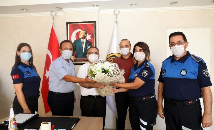 Alanya’da Zabıta Teşkilatı’nın 194. kuruluş yıl dönümü Covid-19 salgını nedeniyle kısıtlı etkinliklerle kutlandı. Zabıtadan sorumlu Alanya Belediye Başkan Yardımcısı Ali Yenialp ve Alanya Belediyesi Zabıta Müdürü Naci Uzunsakal, Alanya Belediye Başkan Vekili Mustafa Tuna’yı ziyaret ederek, çiçek takdim etti.