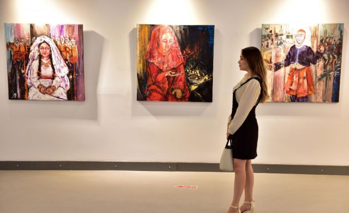 Galerinin giriş kısmında kına gecesi, düğünde oynayan, evinin penceresinden dışarıyı gözleyen kadınların konu edildiği tablolar yer alıyor. Her biri 1 metreye 1 metre olan yağlı boya tablolarından ‘At Üzerinde Gelin Alma’ tablosu da sanatçı tarafından galerinin koleksiyonuna hediye edildi. Açılışı 8 Mart Dünya Kadınlar Günü’nde yapılan ve Korona virüs nedeniyle süresi uzatılan serginin eserleri pandemi nedeniyle evde kalmamız gereken günlerde de sanatseverlerle buluşturuldu. ‘Evde kal, sanatla kal’ mottosu ile yola çıkan Kepez Belediyesi, sosyal medya hesaplarından Modern Sanatlar Galerisi’ndeki güncel sergilerin eserlerini sanatseverlerle paylaştı.