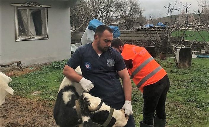 Antalya Büyükşehir Belediyesi veterinerleri depremden etkilenen Gaziantep’te küçükbaş ve büyükbaş hayvanların kontrol ve muayenesini yaparken, hastalıkların da tedavisini gerçekleştiriyor.