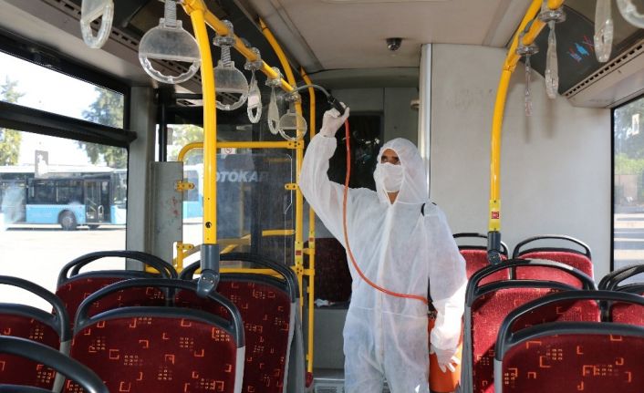 Her gün binlerce vatandaşa hizmet veren toplu ulaşım araçlarındaki temizlik ve dezenfeksiyon çalışması 10 Mart’tan bu yana kesintisiz şekilde yapılıyor. Şehir içi ve yaylalar dahil birçok noktaya ulaşım hizmeti veren otobüsler, her gün sefere çıkmadan önce ve sefer sonrasında dezenfekte edilerek, steril bir şekilde yolculuğa hazır hale getiriliyor.
