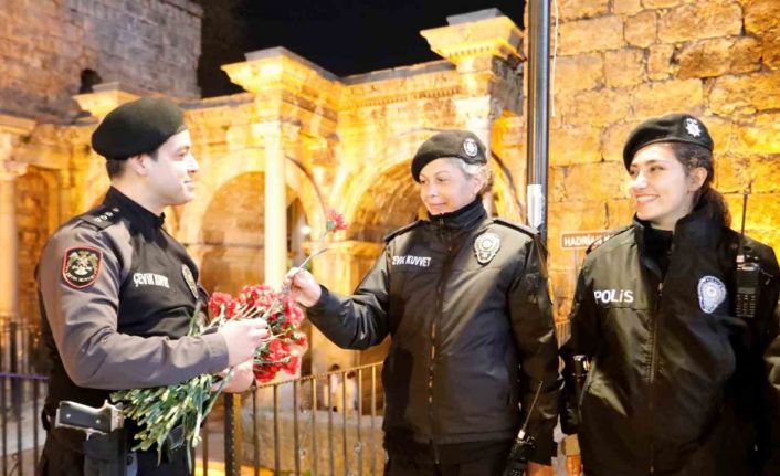 Antalya’da 8 Mart Dünya Kadınları Günü nedeniyle düzenlenen etkinlik ve programlarda görev alan kadın polislere müdür ve amirleri tarafından karanfil vererek Kadınlar Günü’nü kutladı.