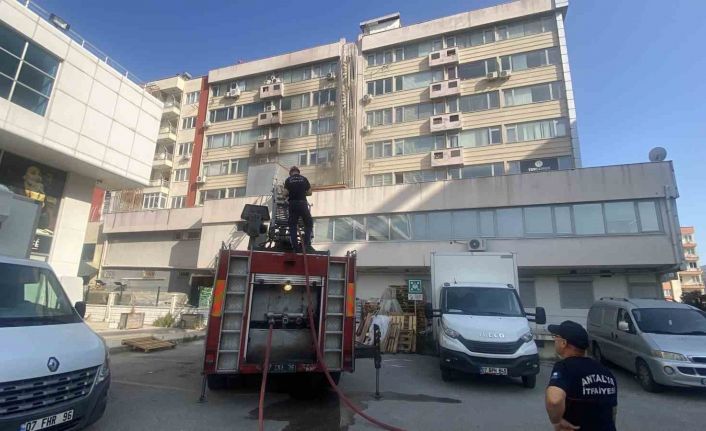 Antalya’da bir iş merkezinde klima motorundan çıkan yangın, itfaiye ekipleri tarafından söndürüldü.