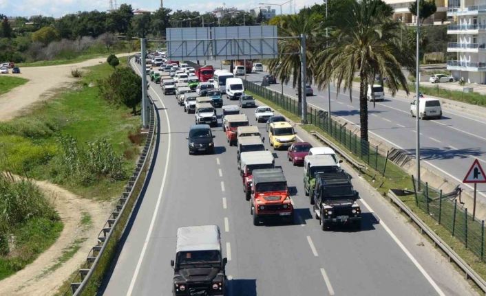 Antalya’nın Manavgat ilçesinde, Beşkonak ve Side bölgelerinde tur yapan safari şirketleri, minibüs ruhsatlı arazi taşıtlarının vizelerinin yapılmamasını tur araçlarıyla düzenledikleri konvoy ve basın açıklamasıyla protesto etti. 1 Mart itibarıyla safari turlarının başladığına dikkat çeken safariciler, araçlarının vizelerinin yapılmaması nedeniyle çalışamadıklarını, bu durumdan kendilerinin yanı sıra ülkenin de zarar gördüğünü dile getirdi.