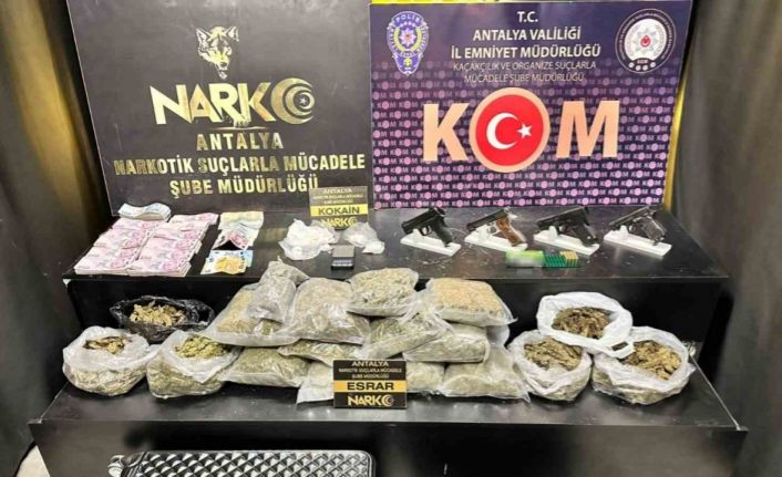 İl Emniyet Müdürlüğü Kaçakçılık ve Organize Suçlarla Mücadele Şube Müdürlüğü birimi, silah ticareti yapan şahıslara yönelik operasyon düzenledi. Operasyon sırasında; 4 adet ruhsatsız tabanca ile şarjörleri, 27 adet fişek, daralı ağırlığı 8 bin 35 gram olan esrar maddesi, daralı ağırlığı 111 gram kokain maddesi, 1 adet hassas terazi ile uyuşturucu ve silah ticaretinden kazanıldığı değerlendirilen; yüklü miktarda Türk lirası ve döviz cinsi para ele geçirildi.