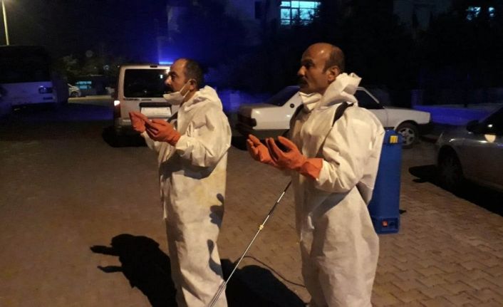 KORONA VİRÜSÜNÜ ÖNLEMEK İÇİN DEZENFEKSİYON ÇALIŞMALARI YAPAN SERİK BELEDİYESİ EKİPLERİ DE YAPILAN DUAYA ''AMİN'' DİYEREK, DUALARININ KABUL OLMASINI DİLEDİ.