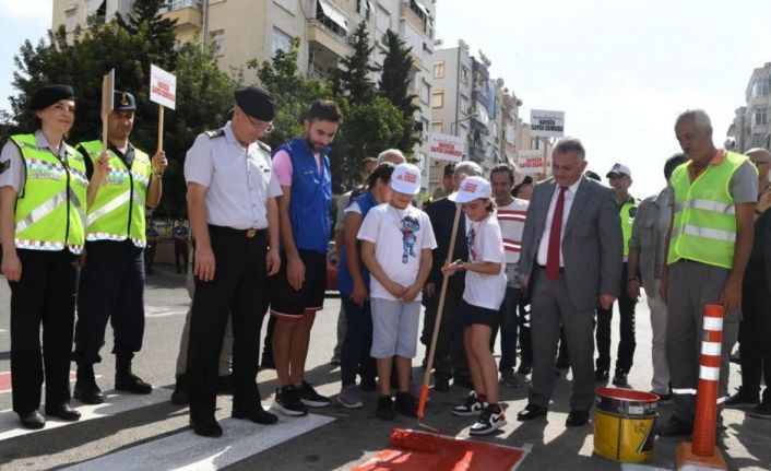 Vali Ersin Yazıcı, ‘Yayalara Öncelik Duruşu, Hayata Saygı Duruşu’ kampanyası çerçevesinde Kepez ilçesi Rasih Kaplan Caddesi’nde Mehmet Kemal Dedeman İlkokulu önünde bulunan yaya geçidini öğrencilerle birlikte kırmızıya boyayarak yaya önceliğine dikkat çekti.