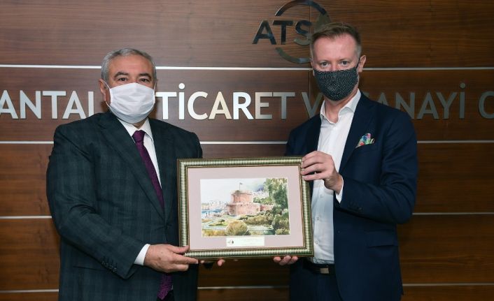 Finlandiya Büyükelçisi Ari Mäki’yi ağırlayan ATSO Yönetim Kurulu Başkanı Davut Çetin, ATSO’nun 50 bine yakın üyesiyle Türkiye’nin en büyük ticaret ve sanayi odalarından biri olduğunu söyledi. ATSO’nun 138 yıllık köklü bir geçmişe sahip olduğunu dile getiren Başkan Davut Çetin, "Oda olarak geçmişten bugüne kent ekonomisinin büyümesi ve ileri gitmesi için çalışıyoruz" dedi. ATSO’nun Türkiye’nin turizm ve tarım merkezi olduğunu dile getiren Başkan Davut Çetin, "Geçtiğimiz yıl Antalya olarak 16 milyona yakın turiste ev sahipliği yaptık. Bugün tüm dünyayı etkisi altına alan pandemiden dolayı turizmde büyük bir düşüş yaşamaktayız. Bugün geçtiğimiz yılın aynı döneminden 10 milyon daha az turisti ağırladık. Ülkemizde COVID 19 pandemisinden en çok etkilenen kent durumundayız" şeklinde konuştu.