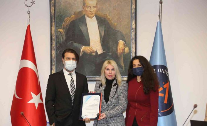 Konuşmaların ardından Akdeniz Üniversitesi Rektörü Prof. Dr. Özlenen Özkan, ISO/IEC 27001:2013 Bilgi Güvenliği Yönetim Sistemi Sertifikasını Proks Belgelendirme Genel Müdürü Alper Öztürk’ün elinden aldı.