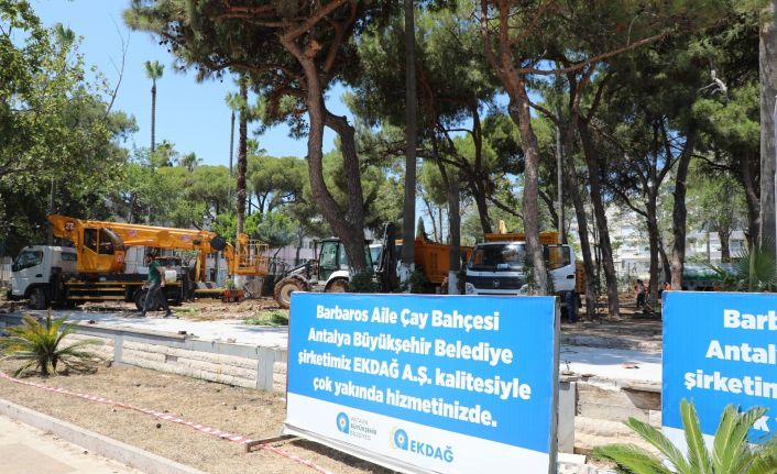 Barbaros Aile Çay Bahçesi Antalya Büyükşehir Belediyesi tarafından yenileniyor. Deniz ve çay kokusunun buluştuğu yerlerden biri olan çay bahçesi, hizmet kalitesini artırmak üzere daha şık ve konforlu hale getiriliyor. Yenileme çalışmaları hızla devam eden Barbaros Aile Çay Bahçesi, yenilenen yüzüyle sosyal tesis olarak Antalyalılara hizmet verecek.