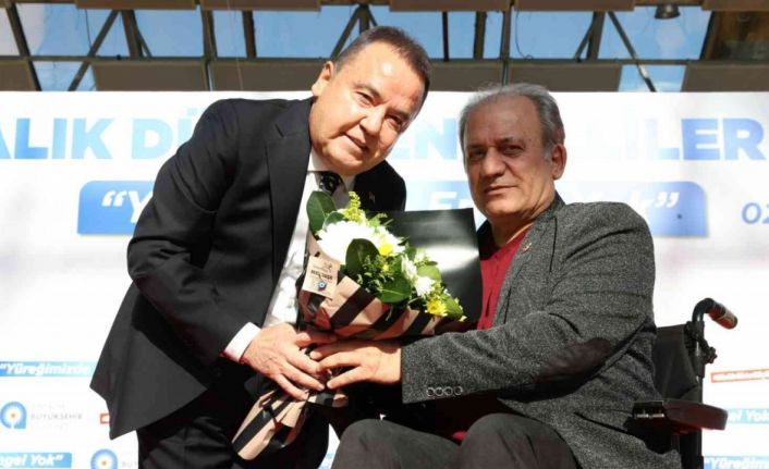 Konuşmaların ardından ise engelli bireyler Başkan Muhittin Böcek ve konuşmacılara desteklerinden dolayı çiçek takdim etti.