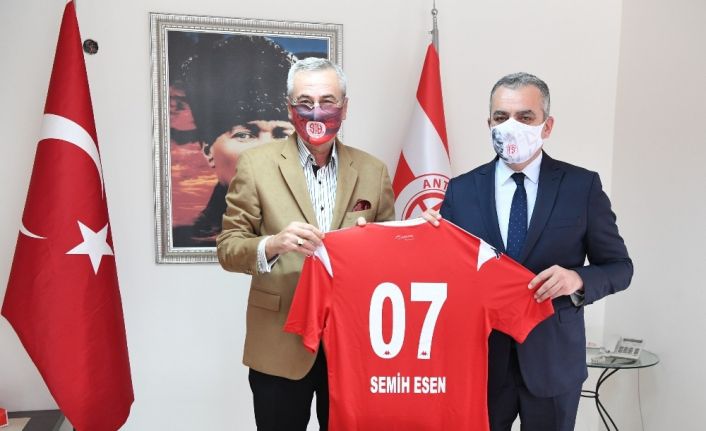 Antalyaspor Kulübü Derneği Başkanı Mustafa Yılmaz, derneğe üye olan Başkan Semih Esen’e ‘07’ sırt numaralı ve isminin yazılı olduğu forma hediye etti. Başkan Esen de Yılmaz’a takıma katkıları dolayısıyla plaket hediye etti. Ziyaretin ardından Konyaaltı Belediye Başkanı Semih Esen, kırmızı beyazlı takımın Beşiktaş ile oynadığı maçı tribünden izleyerek takıma destek verdi.