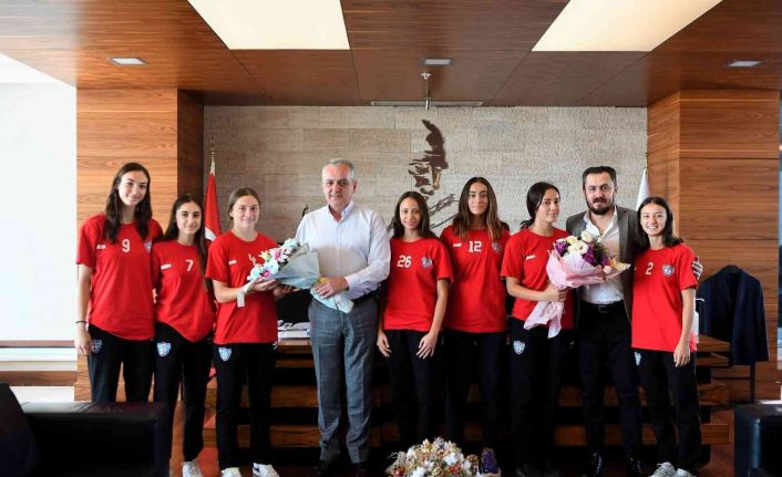 Hentbol Kadınlar 1. Ligi’nde mücadele edecek Konyaaltı Belediyesi Kadın Hentbol Altyapı Takımı, sporcu aileleri, teknik heyet ve kulüp yöneticileri Antalya Konyaaltı Belediye Başkanı Semih Esen’i ziyaret etti.