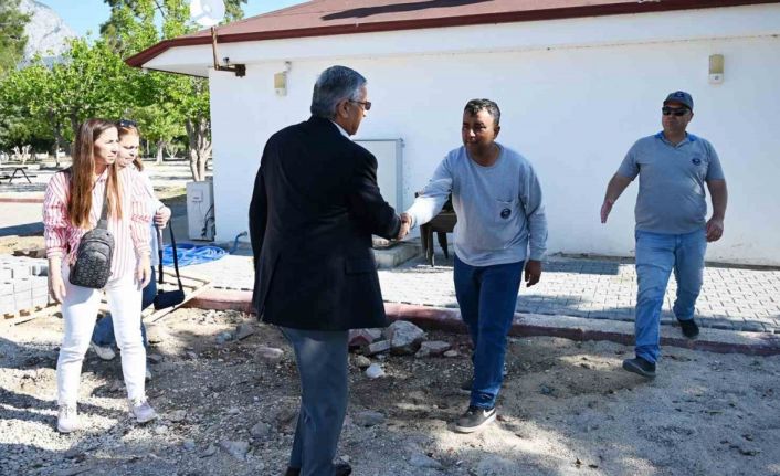 İlk olarak Kemer Belediyesi Kındılçeşme Günübirlik Piknik Alanı ve Kır Düğün Bahçesi’nde yapımı tamamlanmak üzere olan karavan park, kır düğünü alanı ve çevre düzenlemesi çalışmalarını inceleyen Başkan Topaloğlu ve Başkan Yardımcısı Gül, çalışmaların iki gün içerisinde tamamlanması doğrultusunda birim müdürlerine talimat verdi.