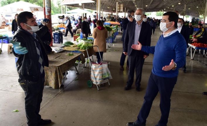 Kepez Belediye Başkanı Hakan Tütüncü, Korona virüs salgının yayılmasını önlemek amacıyla semt pazarlarında aldıkları tedbirleri yerinde incelemeye devam ediyor. Yenidoğan ve Mehmet Akif Mahalleri’ndeki semt pazarlarını da gezen Başkan Tütüncü, korona virüse karşı semt pazarlarında tüm tedbirlerin alındığını söyledi.