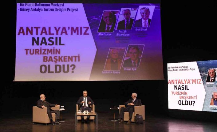 Antalya’da, Muratpaşa Belediyesi’nin düzenlediği söyleşide, dünyanın en başarılı turizm gelişim projelerinden Güney Antalya Turizm Gelişim Projesi konuşuldu. Antalya’nın planlı kalkınma modeliyle turizm başkenti haline gelmesinin her yönüyle değerlendirildiği söyleşide Eski Turizm ve Tanıtma Bakanı Alev Coşkun, eski Devlet Planlama Teşkilatı müsteşarı Prof. Dr. Bilsay Kuruç, eski Antalya Belediye Başkanı Selahattin Tonguç konuşmacı olarak yer aldı. Belediye Başkanı Uysal da söyleşinin moderatörlüğünü yaptı.