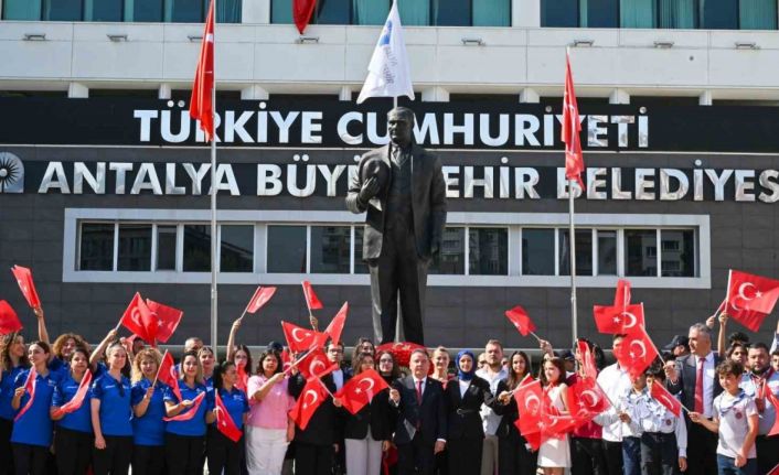 19 Mayıs Atatürk’ü Anma, Gençlik ve Spor Bayramı kutlamaları kapsamında Antalya Büyükşehir Belediyesi’nde çelenk sunma töreni düzenlendi. Büyükşehir Belediyesi Hizmet Binası önünde gerçekleşen törene, Başkan Muhittin Böcek, Genel Sekreter Cansel Tuncer, ASAT Genel Müdürü İbrahim Kurt, genel sekreter yardımcıları, daire başkanları, zabıta personeli, ASAT personeli, Gençlik Meclisi Üyeleri, Genç Antalya Gönüllüleri, Antalya Büyükşehir Belediyesi Spor Kulübü sporcuları ile Büyükşehir izcileri katıldı. Tören, Cumhuriyet’in kurucusu Gazi Mustafa Kemal Atatürk’ün anıtına Başkan Muhittin Böcek’in çelenk sunulmasıyla başladı. Saygı duruşunun ardından, Antalya Büyükşehir Belediye Bandosu (ABBO) eşliğinde İstiklal Marşı okundu. Başkan Böcek, çelenk töreninin ardından sporcular ve gençlerle Atatürk anıtı önünde hatıra fotoğrafı çektirdi.