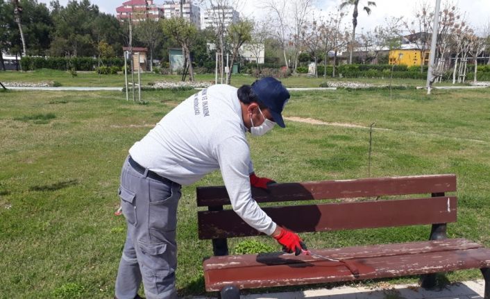 Antalya Büyükşehir Belediyesi Park ve Bahçeler Dairesi Yeşil Alanlar Bakım ve Onarım Şube Müdürlüğü Ekipleri korona virüsün bittiği günlerde Antalyalıların daha güzel ve bakımlı parklarda vakit geçirmesi için çalışma yapıyor. Parkların ziyaretçi girişine kapatılmasını fırsat bilen ekipler kent mobilyaları, oyun grupları ve spor aletlerinin bakım ve iyileştirmesini gerçekleştiriyor.