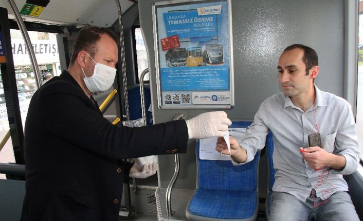 Büyükşehir Belediyesi ülkemizde de görülen yeni tip korona virüs etkilerini en aza indirilmesi için kent genelinde dört koldan hijyen seferi yürütüyor. Toplu ulaşım araçlarına ve duraklara yönelik temizlik çalışması da devam ediyor. Meydan Depolama Alanında ulaşım araçları seferlerine çıkmadan önce dezenfekte işlemi gerçekleştiriliyor. Otobüsler tepeden tırnağa temizlenerek hem virüslerden hem de mikroplardan arındırılıyor. Yapılan detaylı temizliklerde otobüslerin içi, dışı, camlar, sürücü kabini, tutamaklar, yolcu koltuk tutamakları, yerler, tavan, dış tavan ve dip köşe temizliği olmak üzere her nokta temizleniyor. Alınan önlemler kapsamında toplu ulaşım aracı kullanacak vatandaşlara ücretsiz maske dağıtımı da sürüyor. Maskesiz otobüslere ve tramvaya binmeye çalışan vatandaşlara şoförler ve güvenlik görevlileri tarafından maske dağıtılıyor. Büyükşehir Belediyesi haftanın ilk günü otobüslerde 9 bin, tramvaylarda ise 2 bin ücretsiz maske dağıtımında bulundu.