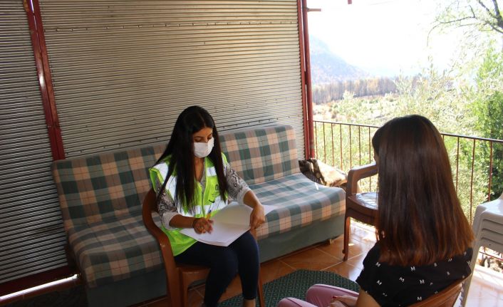 Manavgat ilçesinde yangından etkilenen mahallelerde Antalya Büyükşehir Belediyesi hasar tespit çalışmalarına devam ediyor. Büyükşehir Belediyesi Sosyal Hizmetler Dairesi Başkanlığı’nda görevli psikologlar da yangın bölgesinde travmatik vakaların çözümü için vatandaşları evlerinde ziyaret ederek görüşüyor. Ziyaret ettikleri kişilere Antalya Büyükşehir Belediyesi olarak yangından her zaman yanlarında olduklarını söyleyen psikologlar, afetten etkilenen vatandaşların ruhsal ve psikolojik durumlarını düzeltmek için de ellerinden gelen desteği vereceklerini belirtiyor.