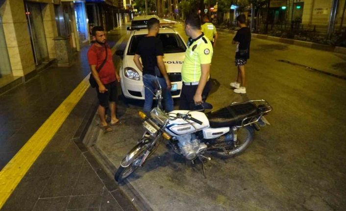 Dün gece saatlerinde Antalya Caddesi’nde trafik denetimi yapan Manavgat Emniyet Müdürlüğü Trafik Denetleme Büro Amirliğine bağlı ekipler, durdurduğu motosikletin plakasının ve sürücüsünün de ehliyetinin olmadığını belirledi. Motosikletin sorgulamasında Alanya’dan çalıntı olduğu, İncekum Jandarma Karakolu tarafından çalıntı kaydının bulunduğu ve arandığı öğrenildi. Trafik ekipleri, motosiklet sürücüsü Mustafa El Ahmed’e sürücü belgesiz araç kullanmaktan 9 bin 190 TL ceza uygularken motosikletin çalıntı olması nedeniyle olay yerine Asayiş ekipleri çağrıldı.