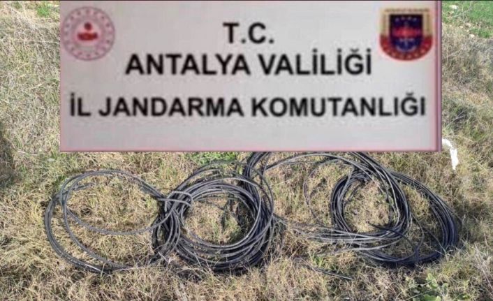 Antalya’nın Serik ilçesinde 300 metrelik haberleşme ve nakil kablosu ile dinamo çalan hırsızlar, jandarma tarafından yakalandı.
