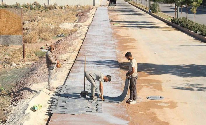 Döşemealtı Belediyesi Fen İşleri Müdürlüğüne bağlı ekipler Altınkale Mahallesi Rauf Orbay ve Aşık Veysel Caddeleri ile Cumhuriyet Caddesi üzerinde renkli baskı beton kaldırım yapıyor.