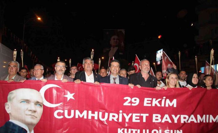 Antalya Döşemealtı Belediyesi’nin 29 Ekim Cumhuriyet Bayramı etkinlikleri ilçede büyük bir coşkuyla kutlandı. Yüzlerce aracın katıldığı kortejle başlayan coşku, Fener Alayı Cumhuriyet Yürüyüşüyle devam etti. Ellerinde meşalelerli binlerce Döşemealtı’lı Atatürk Caddesi üzerinde yürüdü. İlçenin ilk kent meydanı olan Döşemealtı Belediyesi Kent Meydanı’nda bir araya gelen yaklaşık 10 bin kişi ünlü sanatçılar Turgut Çıngı ve Melek Mosso’nun şarkılarıyla büyük bayramı kutladı