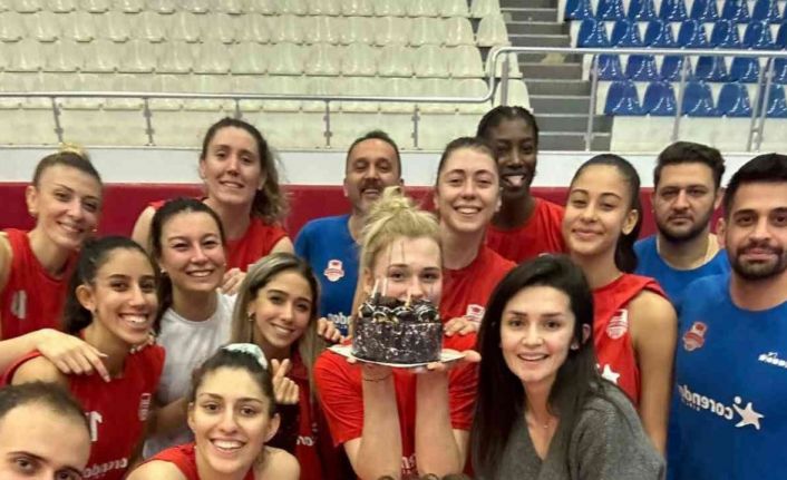 Muratpaşa Belediyespor formasıyla çıktığı ilk maçta 19 sayıyla sahanın yıldızı olan smaçör Aleksandra Dudek, 26’cı yaş günü takım arkadaşlarıyla kutladı.