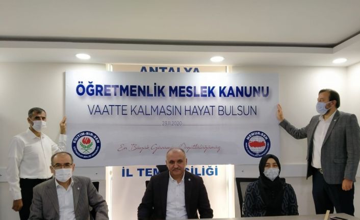 İnsanın, özünü keşfetmeye, kişiliğini inşa etmeye yönelik en büyük eyleminin eğitim olduğunu belirten Eğitim Bir Sen Antalya Şube Başkanı Eyüp Bülent Miran, eğitimin vazgeçilemez ve ertelenemez olduğuna dikkat çekti. Miran, “Eğitimde örnek gösterilen ülkelerde olduğu gibi, öğretmenliğin kamu sistemi içerisinde tanımlanmış eğitim-öğretim hizmetleri sınıfından müstakil bir meslek kanununa kavuşturulması hususu artık daha fazla ötelenmemelidir. Mesleğin hak ettiği şekilde tanımlanması, sosyal zeminde öğretmenlerin itibarının, haklarının korunması ve artırılması, yönetmeliklerle, genelgelerle oluşan görev, yetki, ehliyet, liyakat noktasındaki dağınıklığın giderilmesi için meslek kanununun ivedilikle yürürlüğe konulması gerekmektedir” dedi.