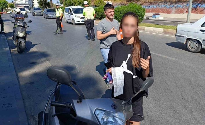 Manavgat’ta polisin motosikletlere yönelik denetiminde trafik polisinin durdurduğu genç kız, sürücü belgesini yeni aldığını evde unuttuğunu söyledi. Yapılan sorgulamada sürücü belgesi olmadığı öğrenilen genç kıza ve motosiklet sahibine toplam 26 bin 644 TL ceza uygulandı. Genç kız itiraz edeceğini söyleyip olay yerinden ayrıldı.