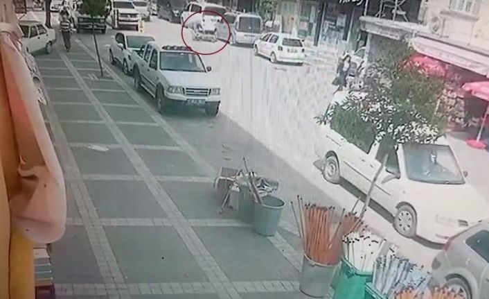 Öte yandan kaza anı bir iş yerinin güvenlik kamerasına yansıdı. Görüntüde, sol şeritten ilerleyen elektrikli scooterin araçların arasından yola çıkan yayaya çarptığı anlar yer aldı.