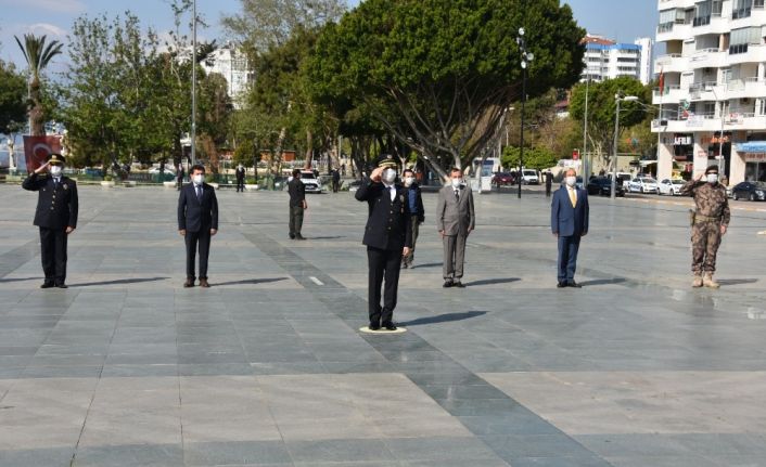 Emniyet Teşkilatı’nın kuruluşunun 175’inci Yıldönümü münasebetiyle Antalya’da çelenk sunma töreni düzenlendi. Törende Korona virüsü nedeniyle sosyal mesafe kuralına uyuldu.