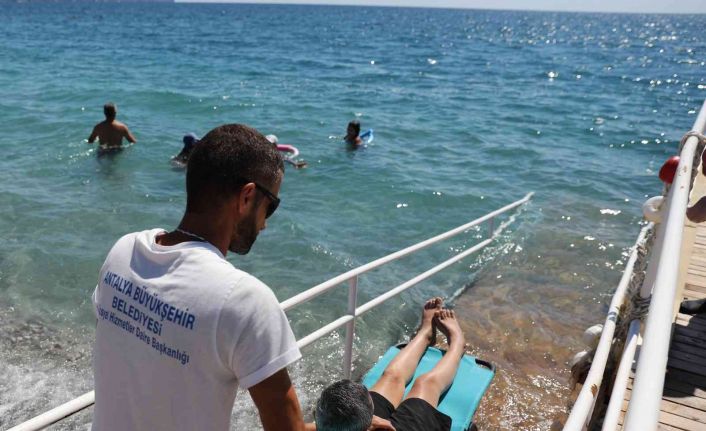 Antalya’da yaşayan ya da şehir dışından tatil için kente gelen engelli vatandaşların rahatlıkla denize girebileceği Büyükşehir Belediyesi Engelsiz Plajı, sıcak yaz günlerinde misafirlerini ağırlamaya devam ediyor.