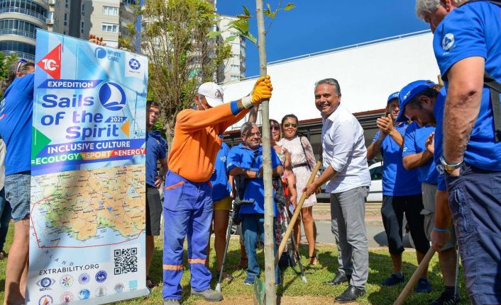 Farklı ülkelerden Antalya’ya gelen engelli deniz tayfaları, fidan dikimi gerçekleştirdi