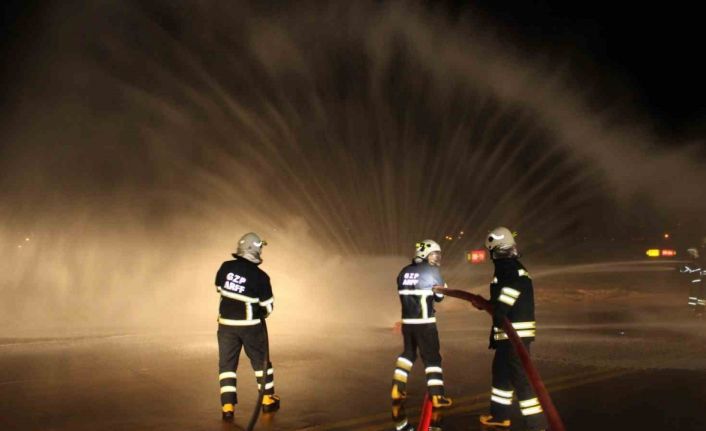 Gazipaşa-Alanya Havalimanı’nda ‘Geniş Katılımlı Acil Durum Planı’ muhteviyatında gece tatbikat düzenlendi. Tatbikatta senaryo gereği piste iniş sırasında kaza kırıma uğrayarak, yangın çıkan uçağa müdahale edildi.