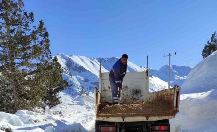 Antalya Büyükşehir Belediyesi Kırsal Hizmetler Dairesi Başkanlığı Gündoğmuş ekipleri ilçede karla kaplı yolları ulaşıma açma çalışmalarının yanında tuzlama çalışması da gerçekleştiriyor. Büyükşehir ekipleri, sorumluluk alanında bulunan Pınarbaşı ve Gelesandra yayla yollarında gece sıcaklığın düşmesiyle birlikte meydana gelen buzlanmaya karşı tuzlama çalışması yaptı. Buzlanmadan dolayı ulaşımda zorluk yaşanmaması nedeniyle yayla yolları tuzlandı.