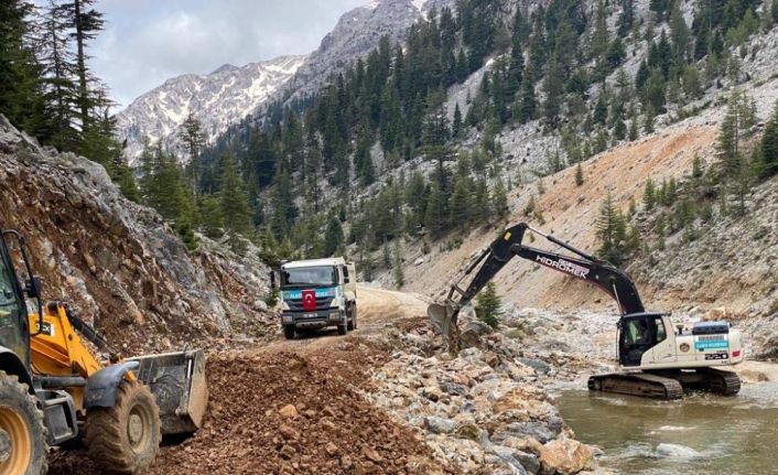 Alanya Belediyesi ekipleri, kar yağışı ve heyelan nedeniyle kapanan Gökbel ve Çökele yayla yolunu trafiğe açtı.