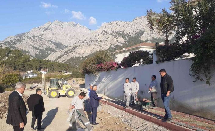 Kemer Belediye Başkanı Necati Topaloğlu, Göynük Mahallesi’nde yapımı devam eden yol, kaldırım ve yağmur suyu drenaj hattı çalışmalarını inceledi.
