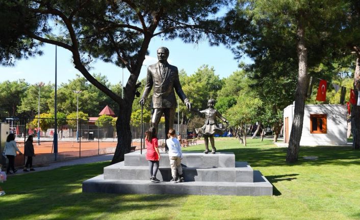 Konyaaltı Belediyesi, Akdeniz Üniversitesi Güzel Sanatlar Fakültesi iş birliği ile yapılan Atatürk anıtı, HayatPark’taki yerini aldı.