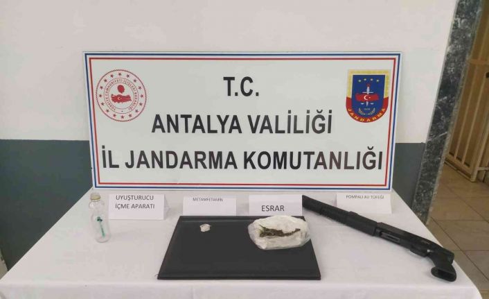 Manavgat Cumhuriyet Başsavcılığı koordinesinde; Sarılar Mahallesi Karayolları Küme Evleri mevkiinde Jandarma Asayiş ve Motosiklet Timi tarafından önleyici kolluk devriyesi gerçekleştirildi. Devriye sırasında durdurulan bir otomobildeki B.Ş. ve K.K.’nin kimlik sorgusu yapıldı. Şüpheli davranışlarda bulunan şahısların otomobil ve üzerlerinde yapılan aramada, sigara paketi içerisinde 3,1 gram metamfetamin, 7,2 gram esrar ve 1 adet ruhsatsız tüfek ele geçirildi. Şüpheliler hakkında adli işlem başlatıldı.