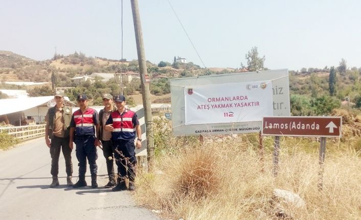 Antalya’nın Gazipaşa İlçe Jandarma Komutanlığı ve Orman İşletme Müdürlüğü görevlileri, orman yangınlarına dikkat çekmek amacıyla şehrin farklı noktalarına uyarı pankartları astı.