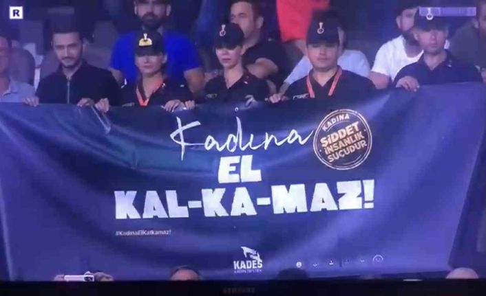 Jandarmadan stadyumda, ’Kadına El Kalkamaz’ pankartı