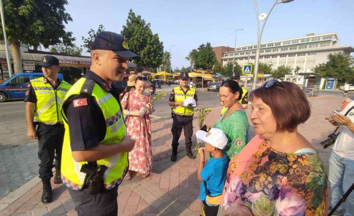 Jandarmadan turistlere bilgilendirici trafik eğitimi