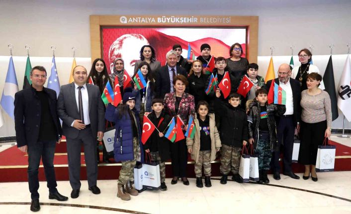 Azerbaycan’ın geçen yıl Ermenistan ile yaptığı savaştaki şehitlerinin çocuklarından 12’si, 4 öğretmeniyle Antalya Büyükşehir Belediyesi’nin misafiri olarak Antalya’ya geldi. Belediyeyi ziyaret eden şehit çocukları ve öğretmenleri, Başkan Vekili Deniz Filiz ve Genel Sekreter Yardımcısı Durmuş Ali Arslan ile görüştü. Çocuklar, Türkiye ve Azerbaycan’ın kardeşliğini anlatan şiirler okudu.