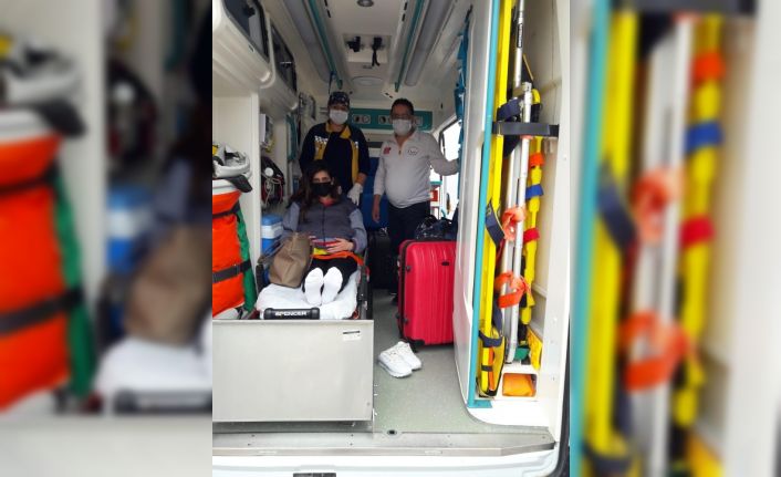 Karantinası sona eren hamile kadın ambulansla evine ulaştırıldı
